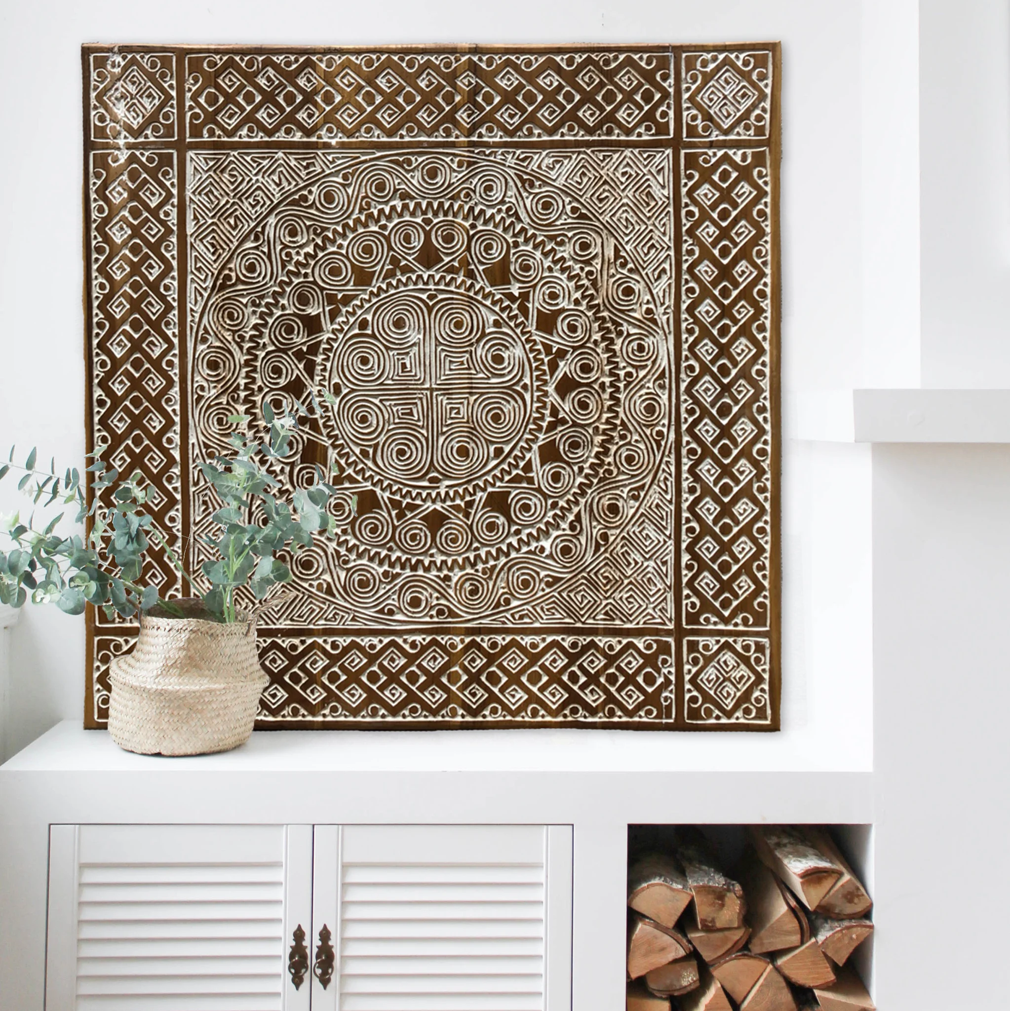 A 4×4 ft wall panel intricately engraved in solid wood.